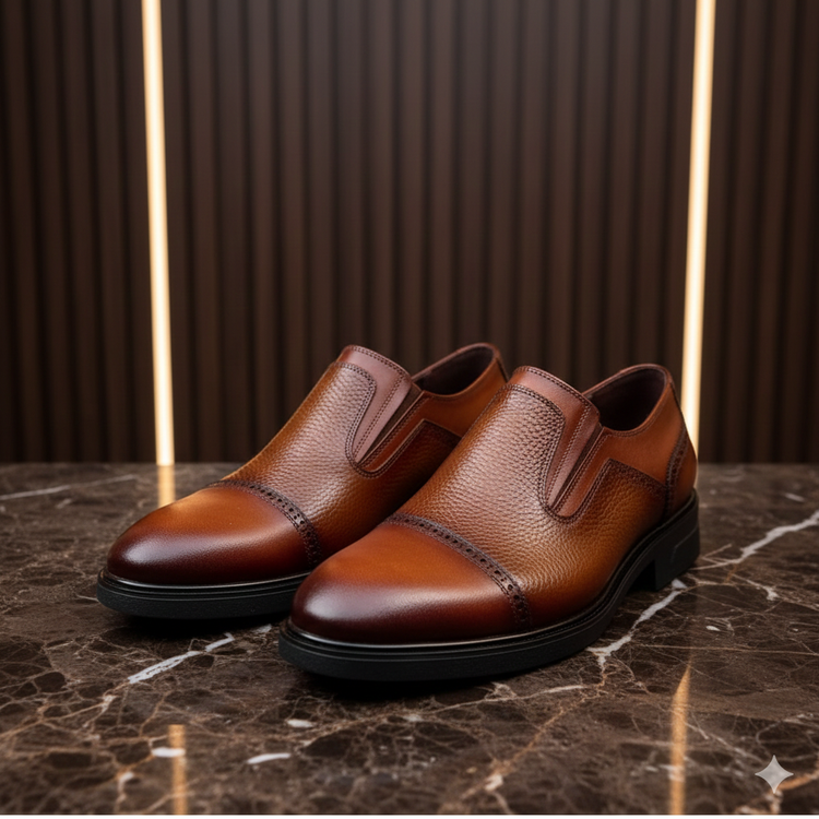 کفش چرم رسمی مردانه کد RS020TN رنگ عسلی از چرم طبیعی گاوی باکیفیت ساخته شده و دارای زیره رابر ترک سبک و طبی است. این کفش چرمی اصل تبریز با طراحی شیک و مدرن، انتخابی عالی برای استفاده رسمی و روزمره و نیمه رسمی محسوب میشود.
