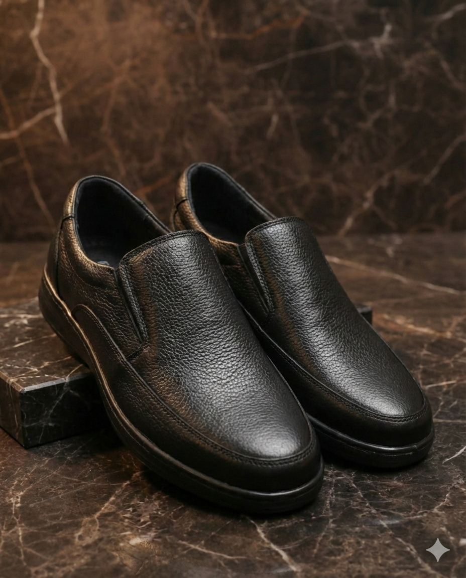 کفش چرم مردانه طبی کد TB009BK رنگی مشکی