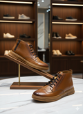 نیم بوت چرم مردانه کد NB052TN رنگ عسلی
