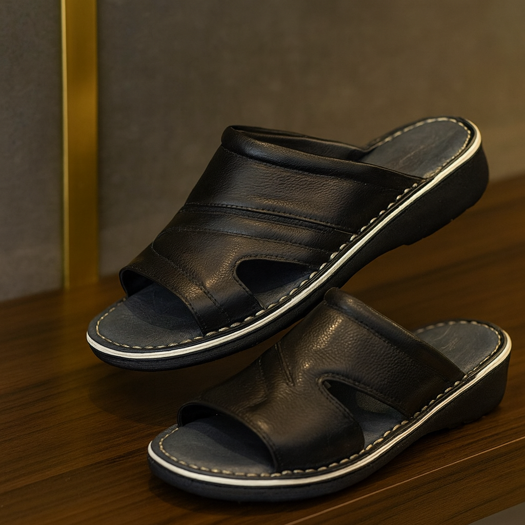 کفش صندل چرم مردانه کد SD004BK رنگ مشکی