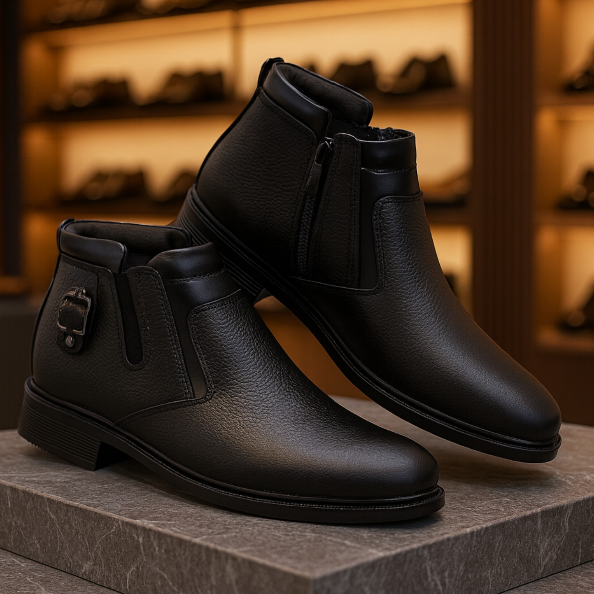 نیم بوت چرم مردانه کد NB036BK رنگ مشکی