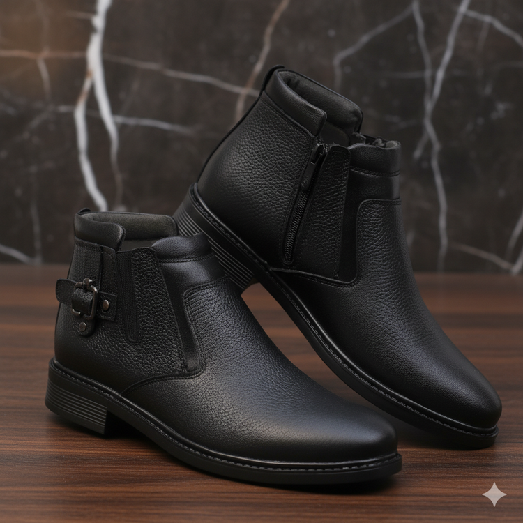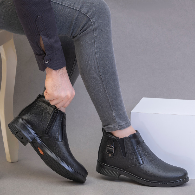 نیم بوت چرم مردانه کد NB036BK رنگ مشکی