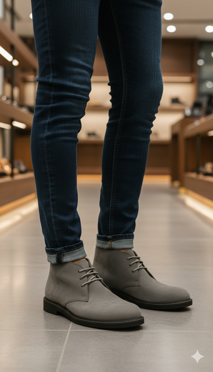 نیم بوت چرم مردانه کد NB062GR رنگ طوسی