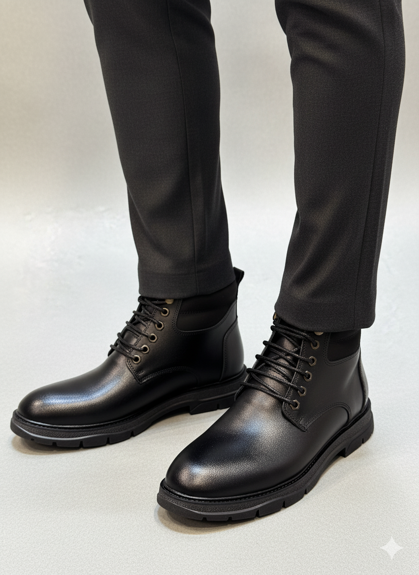نیم بوت چرم مردانه اسپرت کد NB027BK رنگ مشکی از چرم طبیعی گاوی باکیفیت ساخته شده و دارای زیره ترمو ترک ضد سایش وضدلغزش است. این نیم بوت چرمی اصل تبریز با طراحی شیک و مدرن، انتخابی عالی برای استفاده روزمره با استایل های اسپرت و نیمه رسمی محسوب میشود.