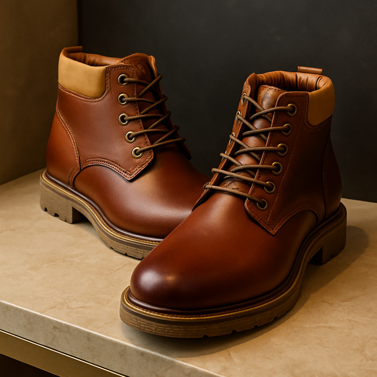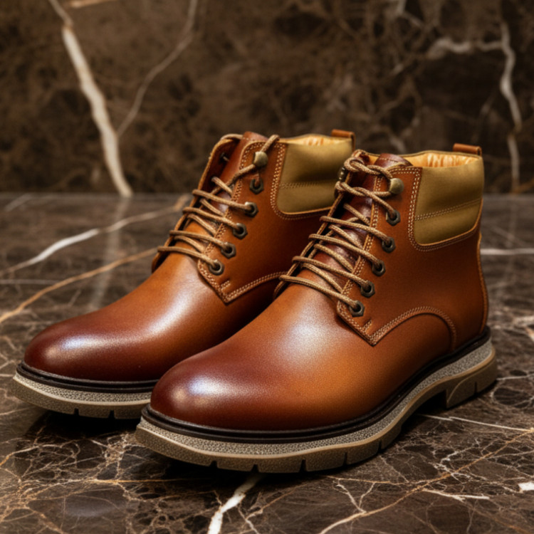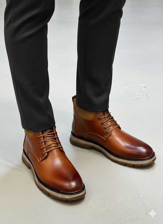 نیم بوت چرم مردانه کد NB048TN رنگ عسلی
