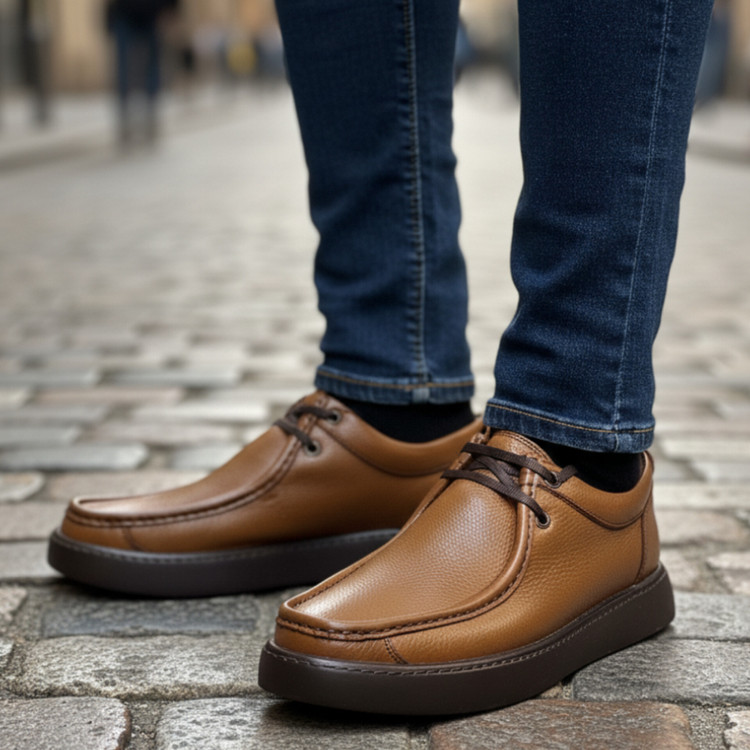 کفش چرم مردانه اسپرت کد SP131TN رنگ عسلی