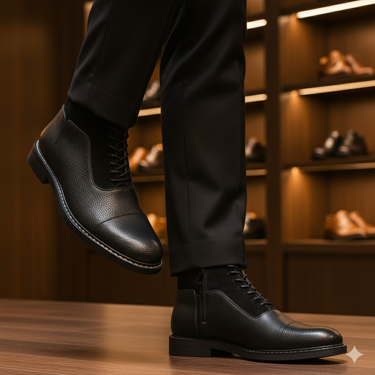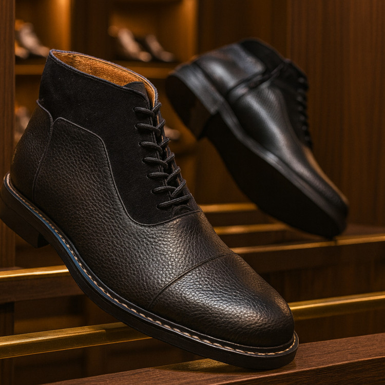 نیم بوت چرم مردانه کد NB025BK رنگ مشکی