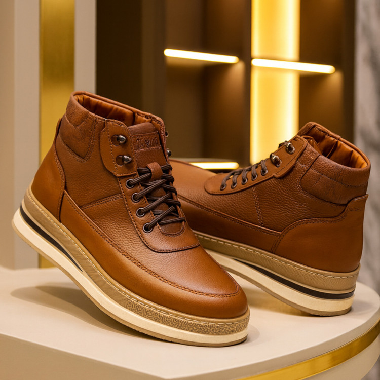 نیم بوت چرم مردانه کد NB045TN رنگ عسلی
