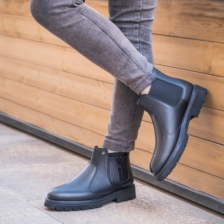 نیم بوت چرم مردانه کد NB076BK رنگ مشکی