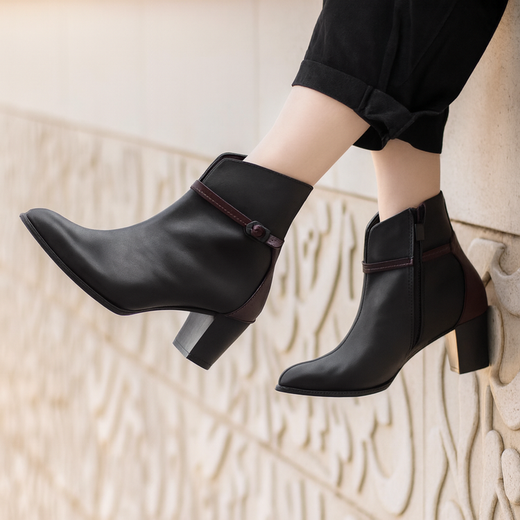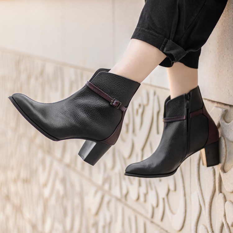 کفش نیم بوت چرم زنانه کد NBW001BK رنگ مشکی