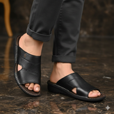صندل چرم مردانه کد SD010BK رنگ مشکی