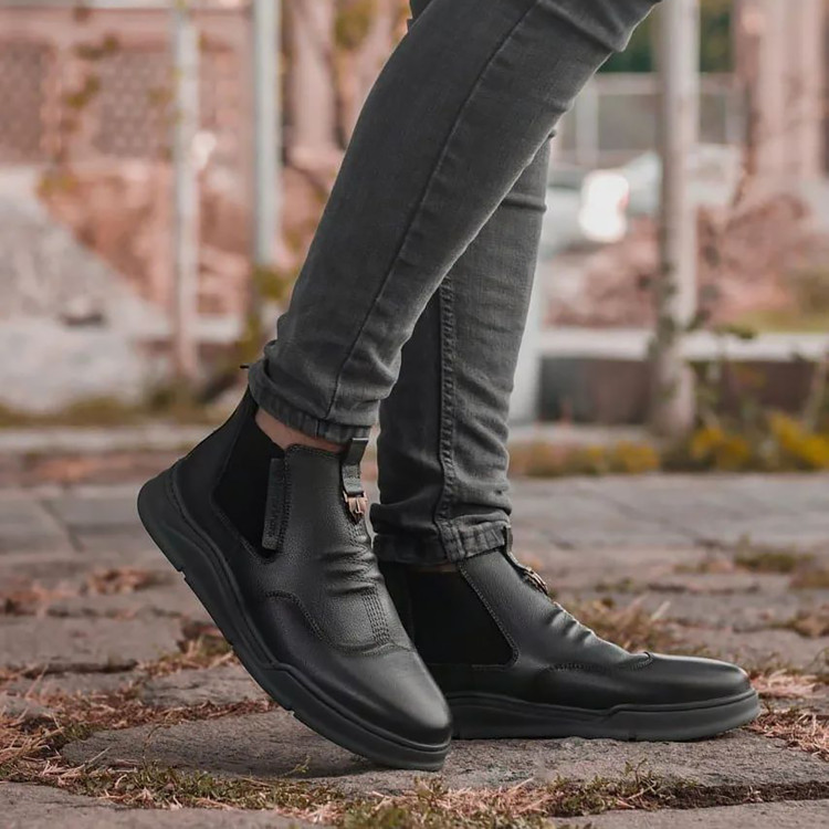 نیم بوت چرم مردانه اسپرت کد NB021BK رنگ مشکی از چرم طبیعی گاوی باکیفیت ساخته شده و دارای زیره ترمو ترک ضد سایش و مقاوم است. این کفش چرمی اصل تبریز با طراحی شیک و مدرن، انتخابی عالی برای استفاده روزمره با استایل های اسپرت و نیمه رسمی محسوب میشود.