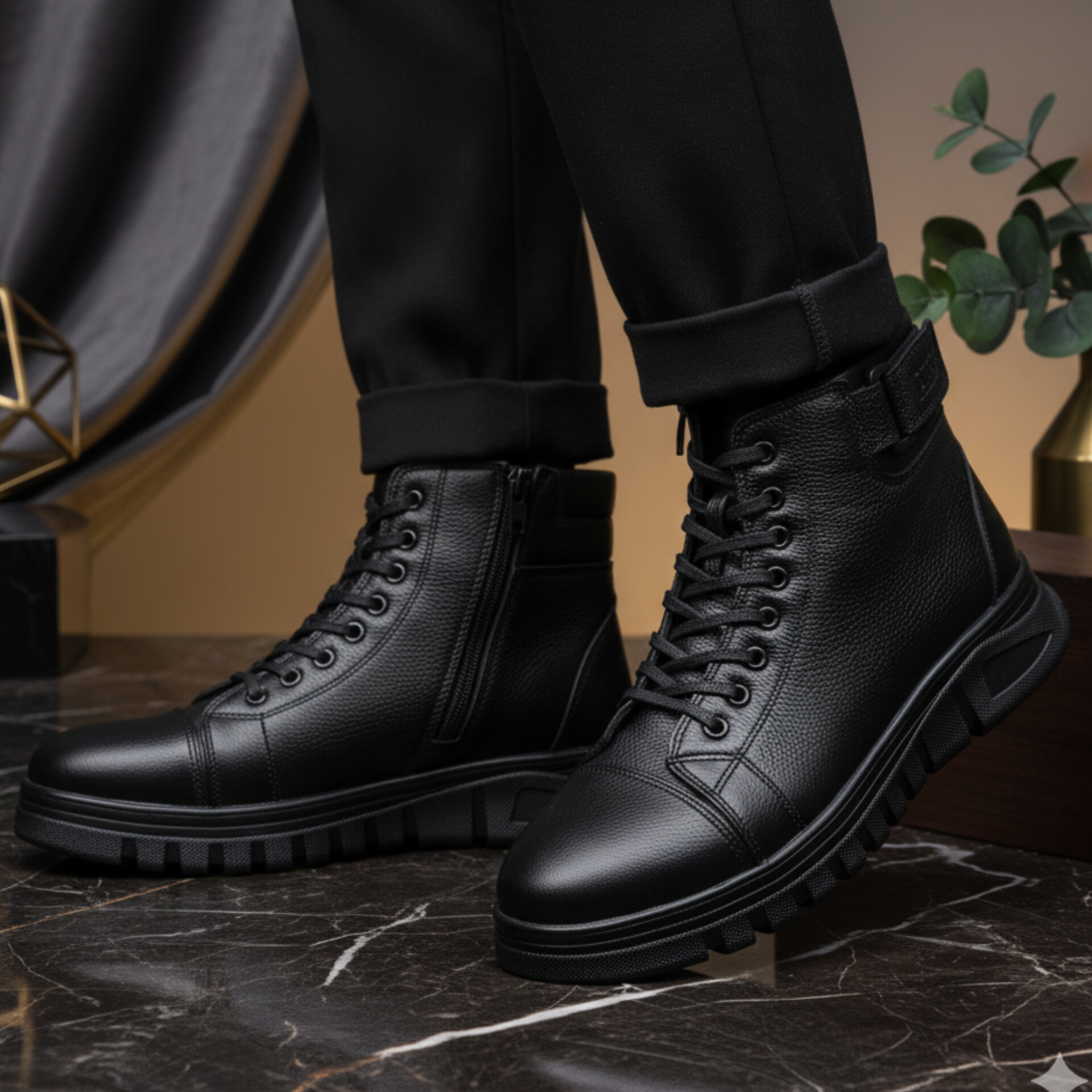 نیم بوت چرم مردانه کد NB020BK رنگ مشکی