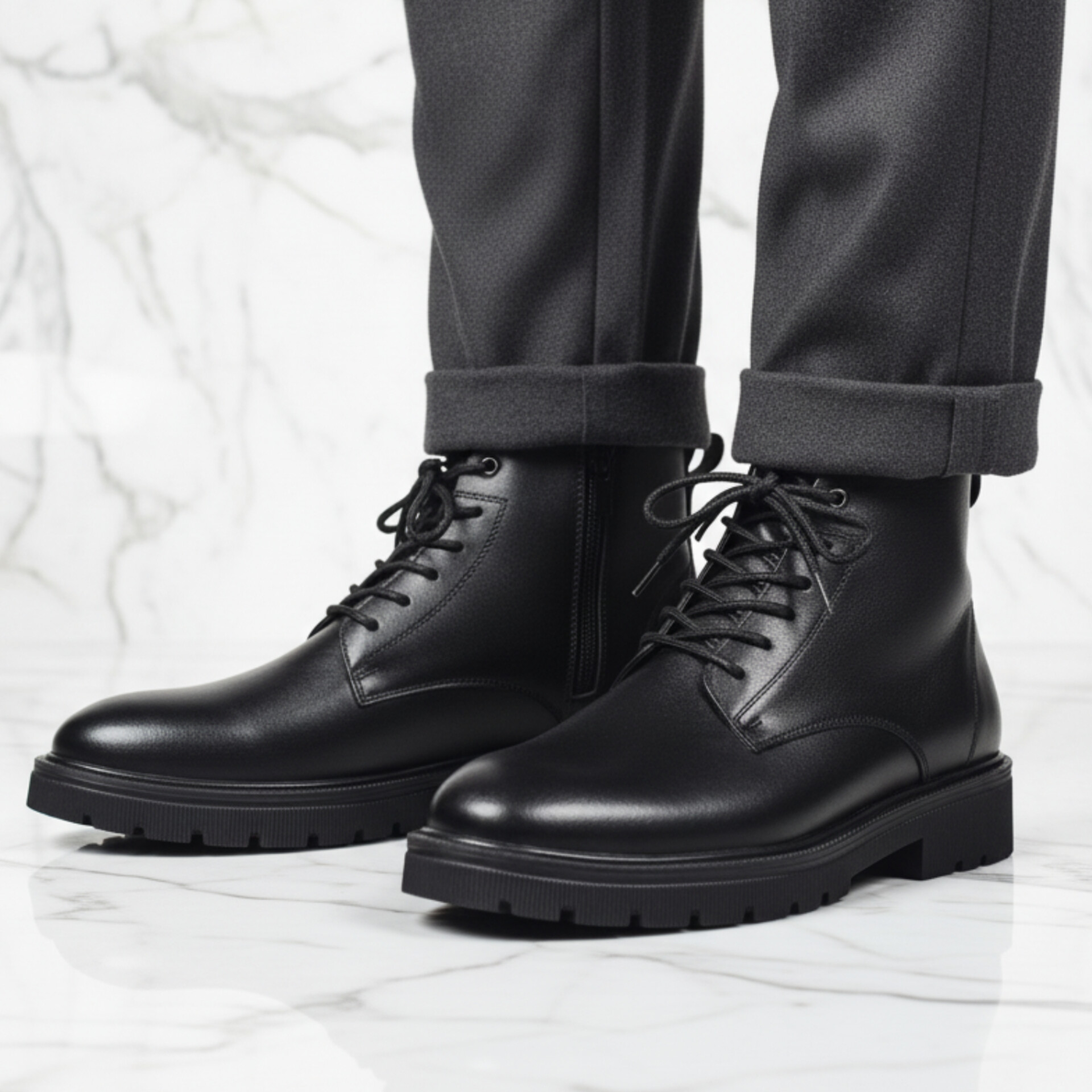 نیم بوت چرم مردانه کد NB018BK رنگ مشکی