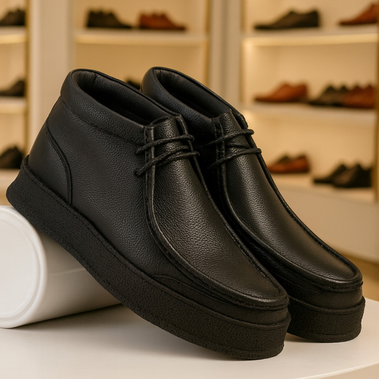 نیم بوت چرم مردانه کد NB017BK رنگ مشکی فلوتر
