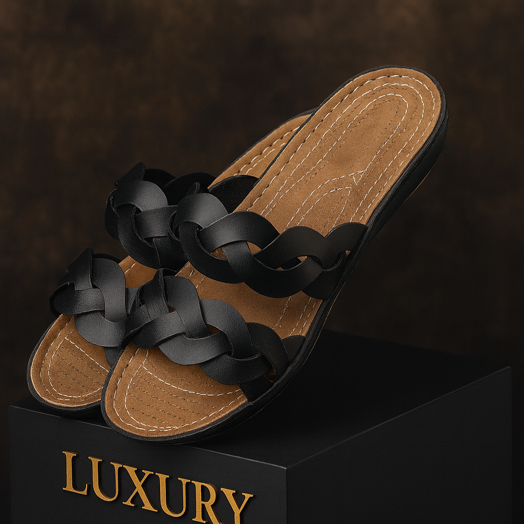 کفش دمپایی چرم زنانه کد DP008BK رنگ مشکی