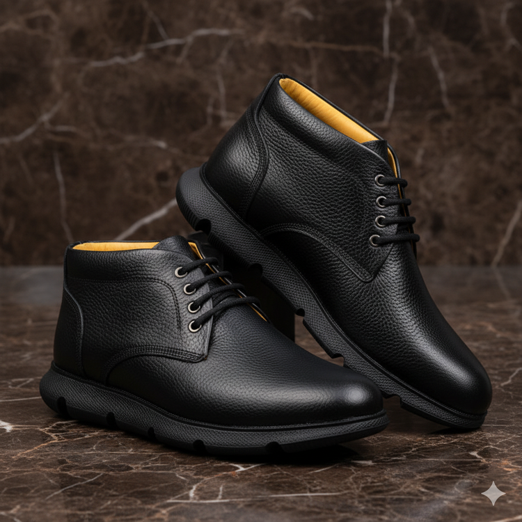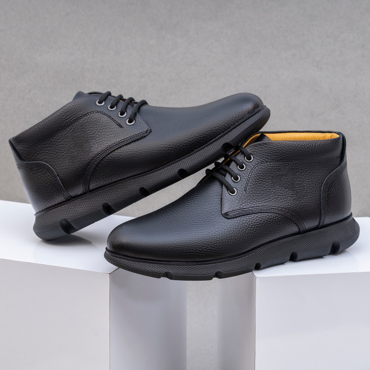 نیم بوت چرم مردانه کد NB016BK رنگ مشکی