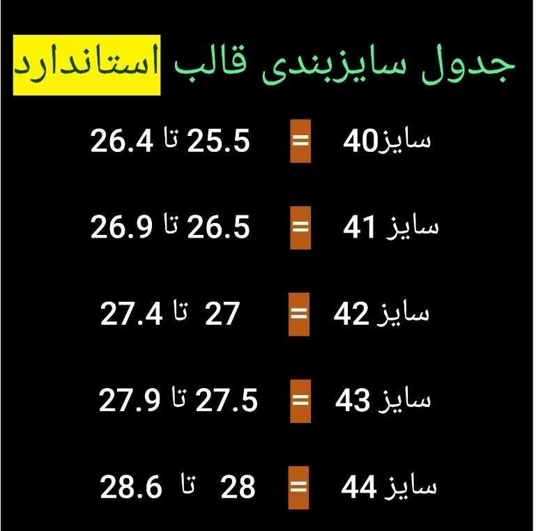 توجه:لطفا سایز خود را با دقت انتخاب کنید طبق جدول راهنمای سایز در عکس ِآخر هر محصول انتخاب کنید.7روز ضمانت تعویض سایز داریم در صورت موجودی و در شرایط آکبند بودن کالا.تعویض رنگ مدل و یامرجوعی نداریم.