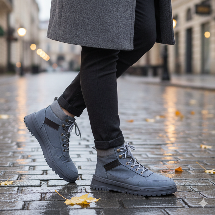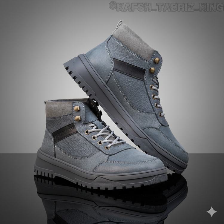 نیم بوت چرم مردانه کد NB060GR رنگ طوسی