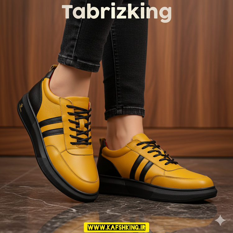 کفش چرم زنانه اسپرت کد LW022YL رنگ خردلی از چرم طبیعی گاوی باکیفیت ساخته شده و دارای زیره پیو ترک ضد سایش و مقاوم است. این کفش چرمی اصل تبریز با طراحی شیک و مدرن، انتخابی عالی برای استفاده روزمره محسوب میشود.