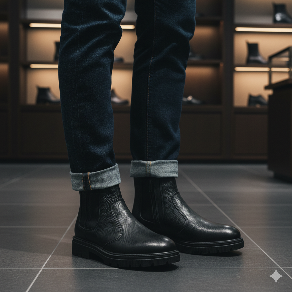 نیم بوت چرم مردانه کد NB012BK رنگ مشکی