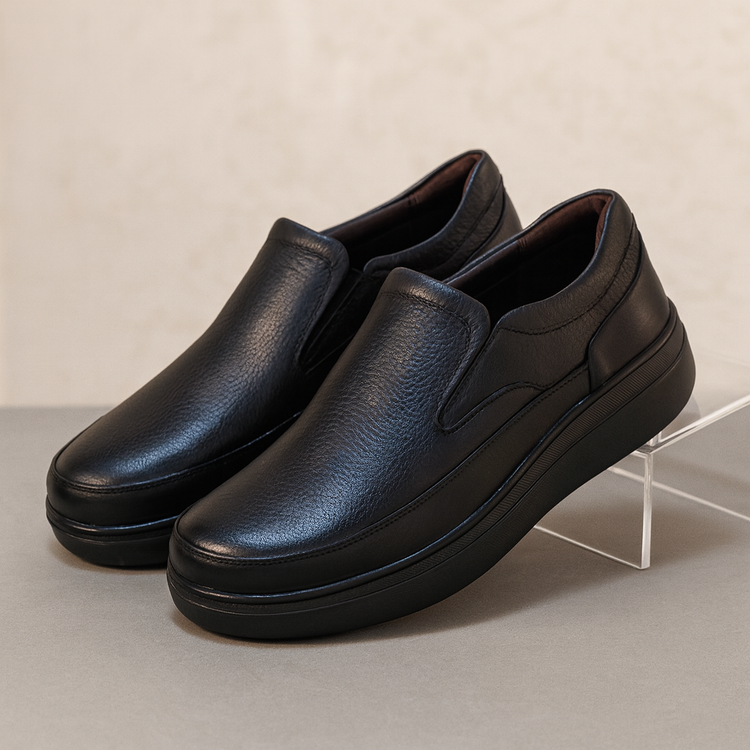 کفش چرم مردانه طبی کد TB036BK رنگی مشکی