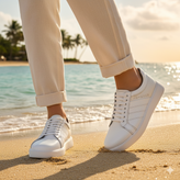 این کفش چرمی با رنگ پرطرفدار سفید قابل ست شدن با استایل اسپرت است و برای محیط کار، مهمانی و استفاده روزانه گزینهای ایدهآل محسوب میشود.
