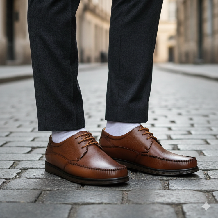این کفش چرمی با رنگ پرطرفدار عسلی قابل ست شدن با استایل طبی است و برای محیط کار، مهمانی و استفاده روزانه گزینهای ایدهآل محسوب میشود.