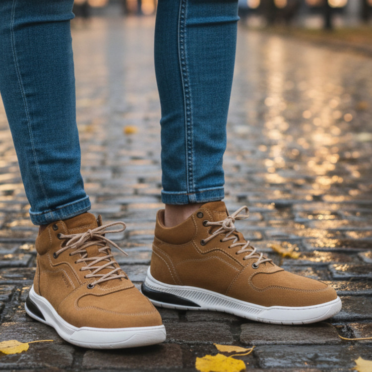 نیم بوت چرم مردانه کد NB039TN رنگ عسلی