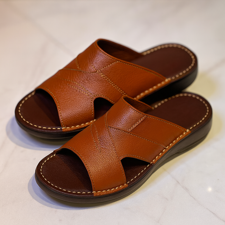 کفش صندل چرم مردانه کد SD021TN رنگ عسلی