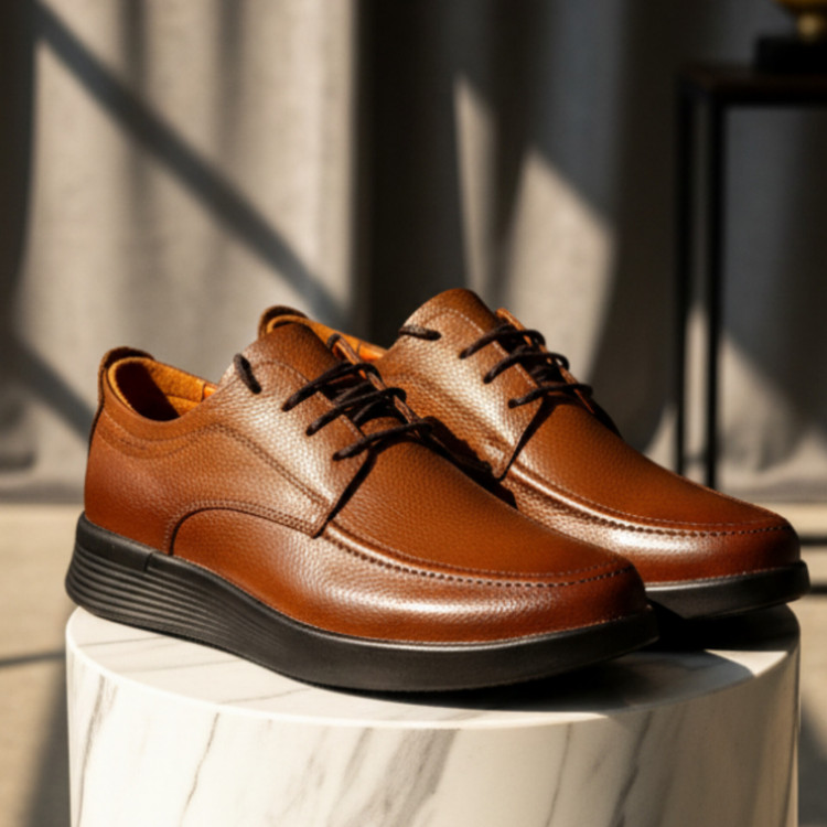 این کفش چرمی با رنگ پرطرفدار عسلی قابل ست شدن با استایل طبی است و برای محیط کار، مهمانی و استفاده روزانه گزینهای ایدهآل محسوب میشود.