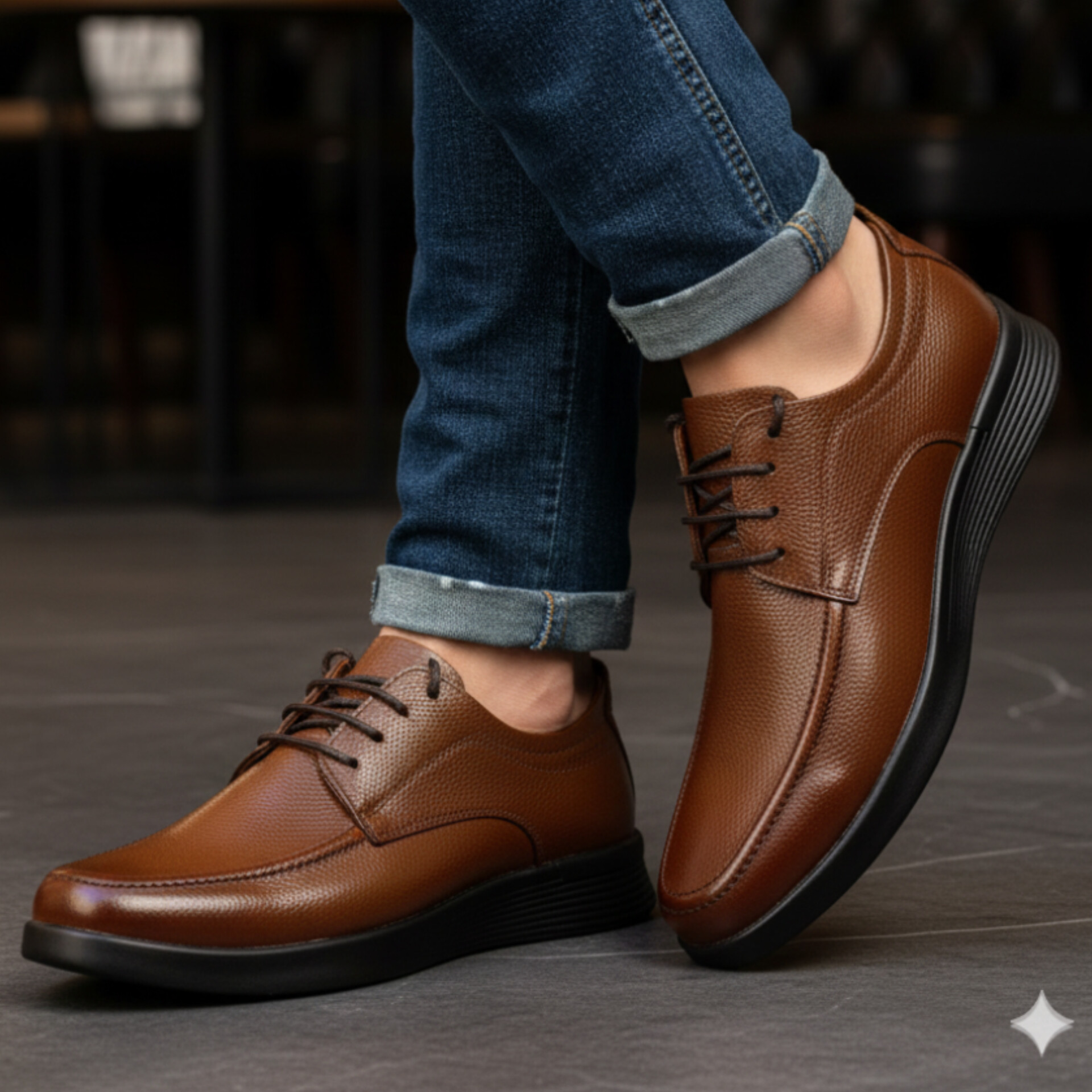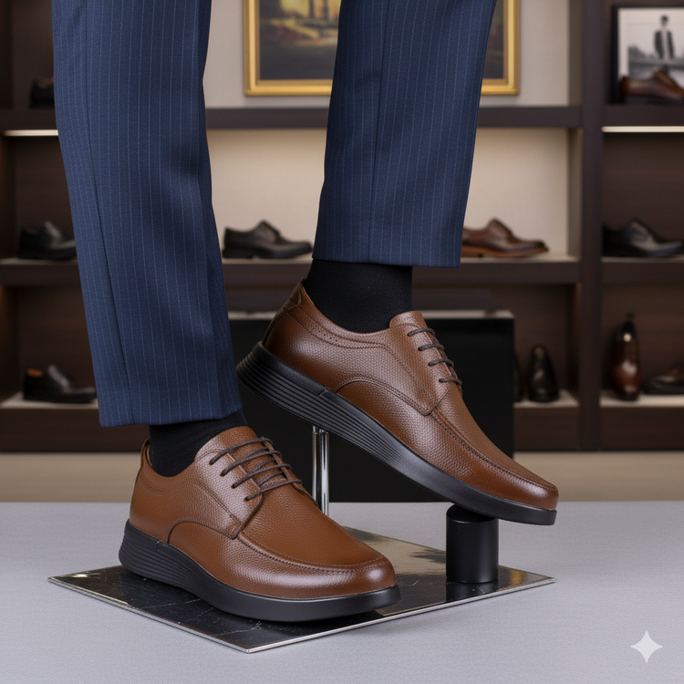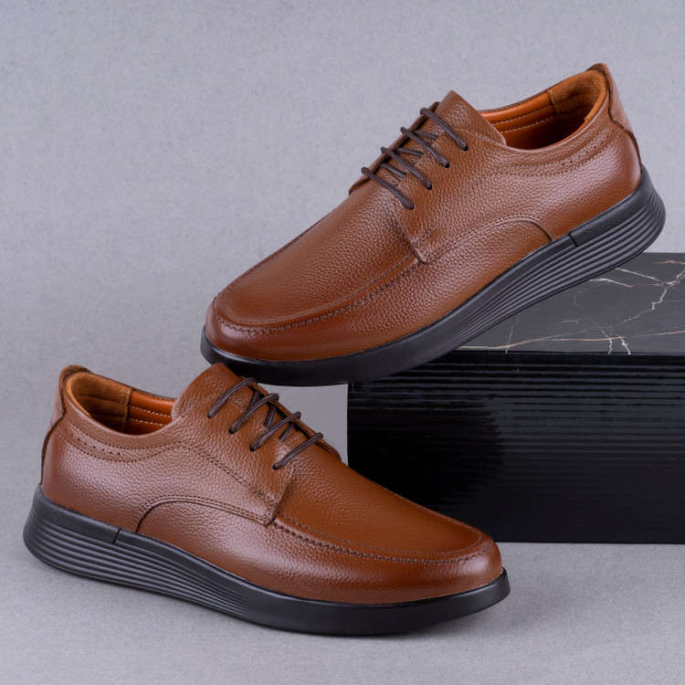 این کفش چرمی با رنگ پرطرفدار عسلی قابل ست شدن با استایل طبی است و برای محیط کار، مهمانی و استفاده روزانه گزینهای ایدهآل محسوب میشود.