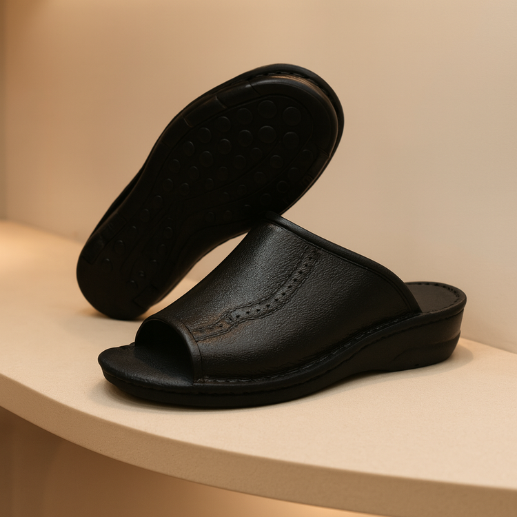 صندل طبی تمام چرم طبیعی فوق صندلی است با رویه تمام چرم گاوی درجه 1 تبریز و آستر تمام چرم بزی ضد تعریق و کفی تمام چرم بزی ضد تعریق بسیار نرم میباشد.و برای راحتی پاها که قسمت زیره این صندل از جنس پلی اورتان خارجی طبی استفاده شده است که به صورت دور دوز به رویه چرمی متصل می باشد . این صندل طبی بوده و برای افرادی که از پادرد و زانودرد و آرتروز و حتی دیسک کمر رنج میبرند گزینه مناسبی می باشد .رنگ این صندل مشکی می باشد. برند معتبر و پرفروش . قالب این صندل استاندارد بوده سایز استاندارد خود را انتخاب بفرمایید.