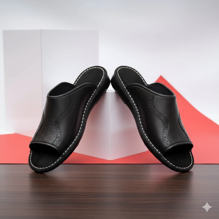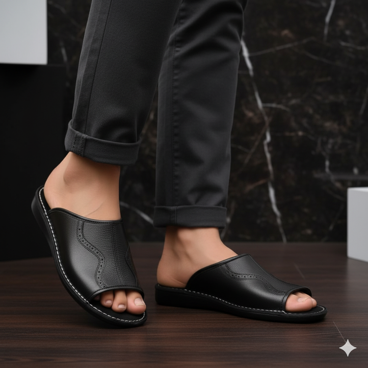 کفش صندل چرم مردانه کد SD002BK رنگ مشکی