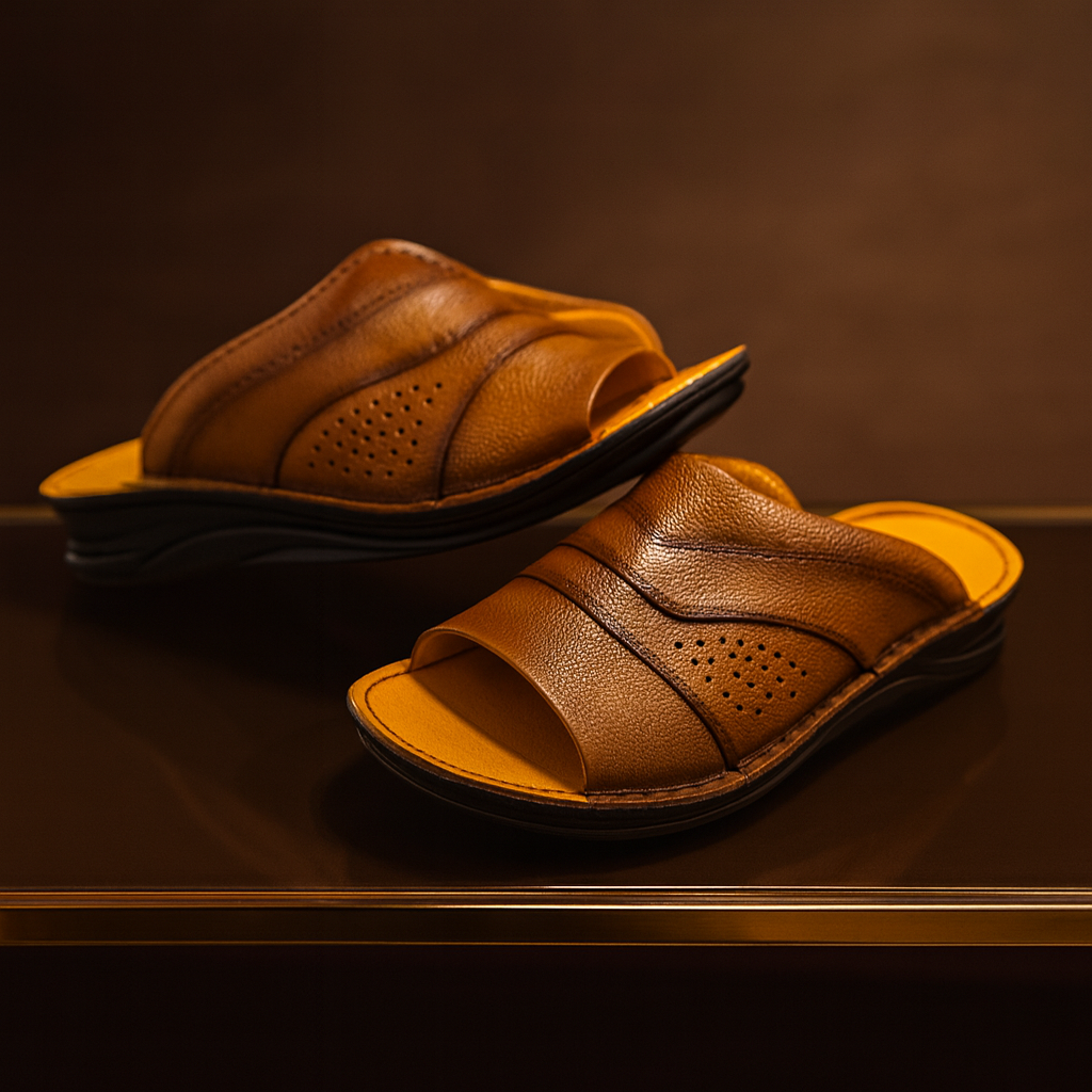 صندل طبی تمام چرم طبیعی فوق صندلی است با رویه تمام چرم گاوی نرم درجه 1 تبریز و جنس آستر تمام چرم بزی ضد تعریق و کفی تمام چرم بزی ضد تعریق بسیار نرم میباشد.و برای راحتی پاها که قسمت زیره این صندل از جنس پلی اورتان خارجی طبی استفاده شده است که به صورت دور دوز به رویه چرمی متصل می باشد . این صندل طبی بوده و برای افرادی که از پادرد و زانودرد و آرتروز و حتی دیسک کمر رنج میبرند گزینه مناسبی می باشد .رنگ این صندل عسلی می باشد. قالب این کفش ترک بوده و بزرگ می باشد. قالب این دمپایی چرم استاندارد می باشد