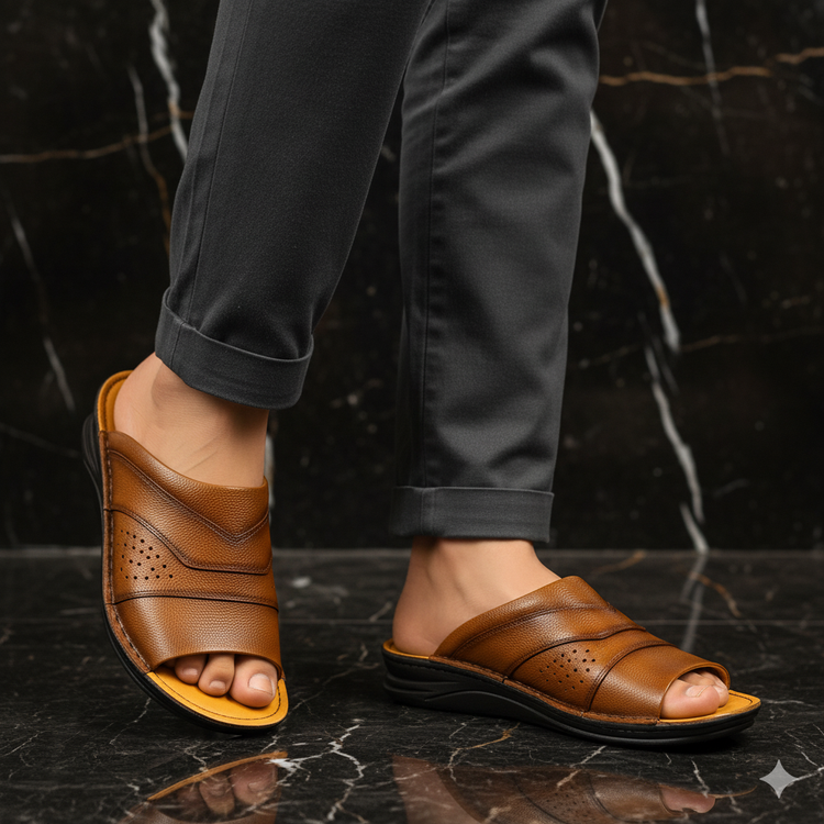 کفش صندل چرم مردانه کد SD013TN رنگ عسلی