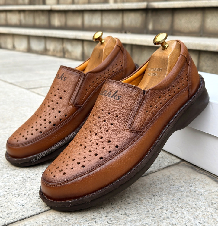 کفش چرم مردانه طبی کد TB040TN رنگ عسلی