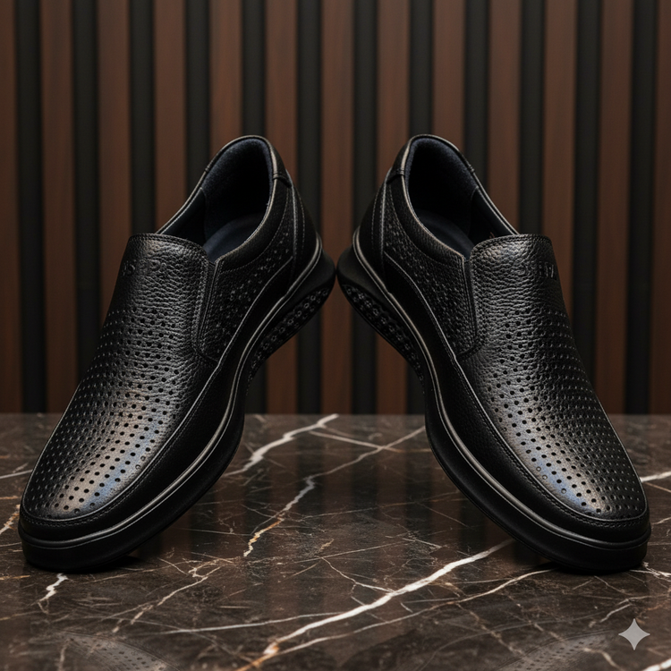 کفش چرم مردانه طبی کد TB001BK رنگی مشکی