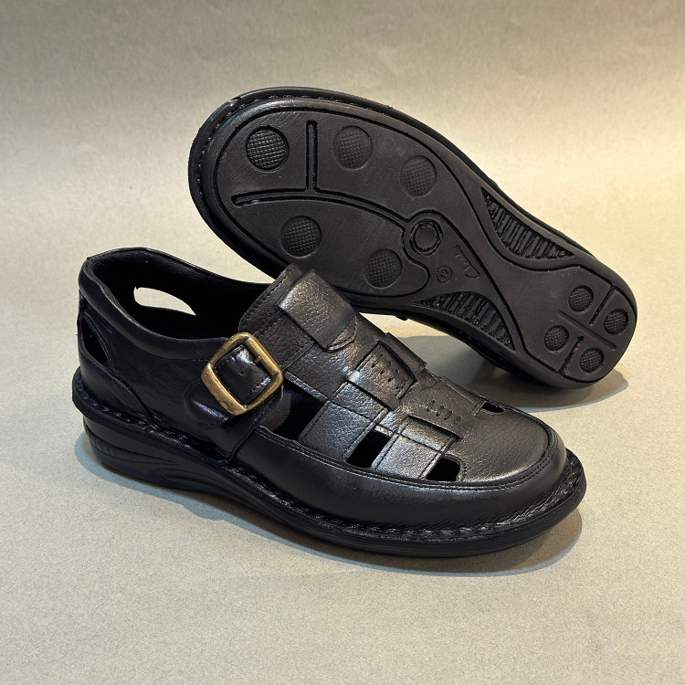 کفش صندل چرم مردانه کد SD037BK رنگ مشکی