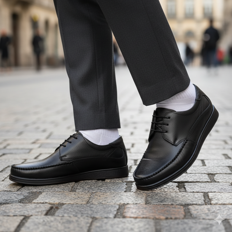 این کفش چرمی با رنگ پرطرفدار مشکی ، قابل ست شدن با استایل اسپورت است و برای محیط کار، مهمانی و استفاده روزانه گزینهای ایدهآل محسوب میشود.