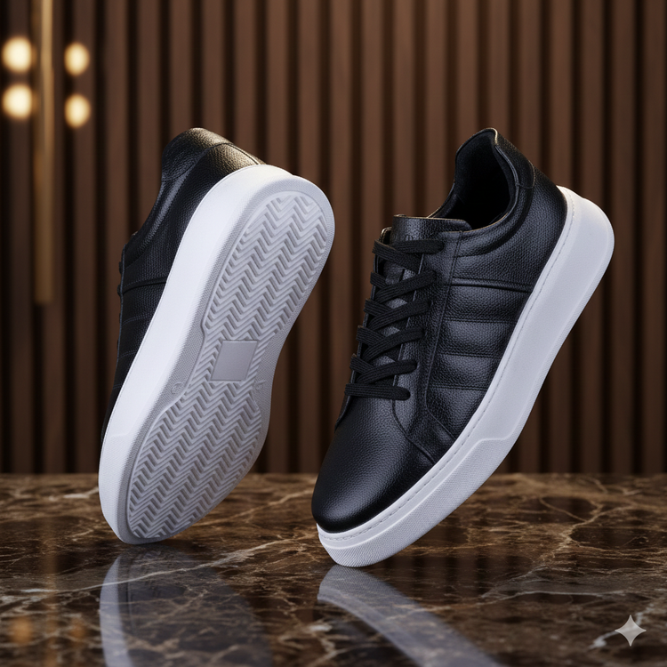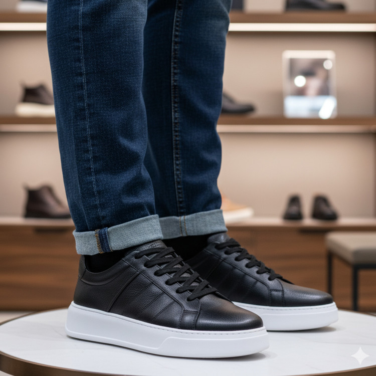 کفش چرم دستدوز تبریز VN007BK مدل ونس اسپرت جدید می باشد . جنس رویه ی کفش VN007BK تمام چرم طبیعی گاوی شرانک نرم می باشد و جنس آستر چرم طبیعی میشن ضد تعریق و ضد بو می باشد و زیره این کفش از جنس پلی اورتان ترک ضد سایش دوردوخت می باشد . کفی این کفش طبی تمام چرم آنتی باکتریال می باشد . کفش VN007BK از کیفیت و دوام بسیار بالایی برخوردار بوده و صادراتی میباشد . رنگ این کفش مشکی زیره سفید می باشد .و قالب کفش ترک می باشد.و 1سایز از استاندارد بزرگ تر است.