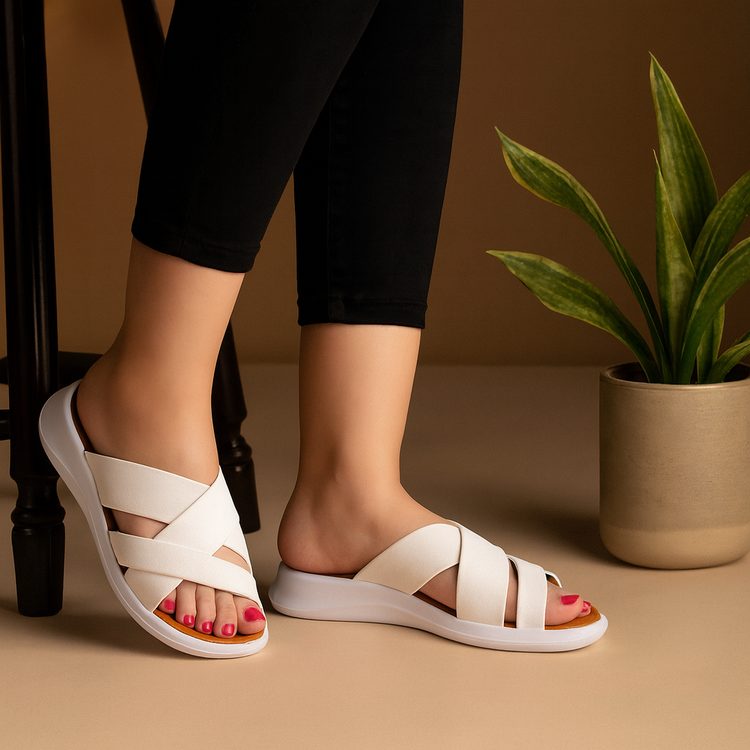 کفش دمپایی چرم زنانه کد DP028WH رنگ سفید