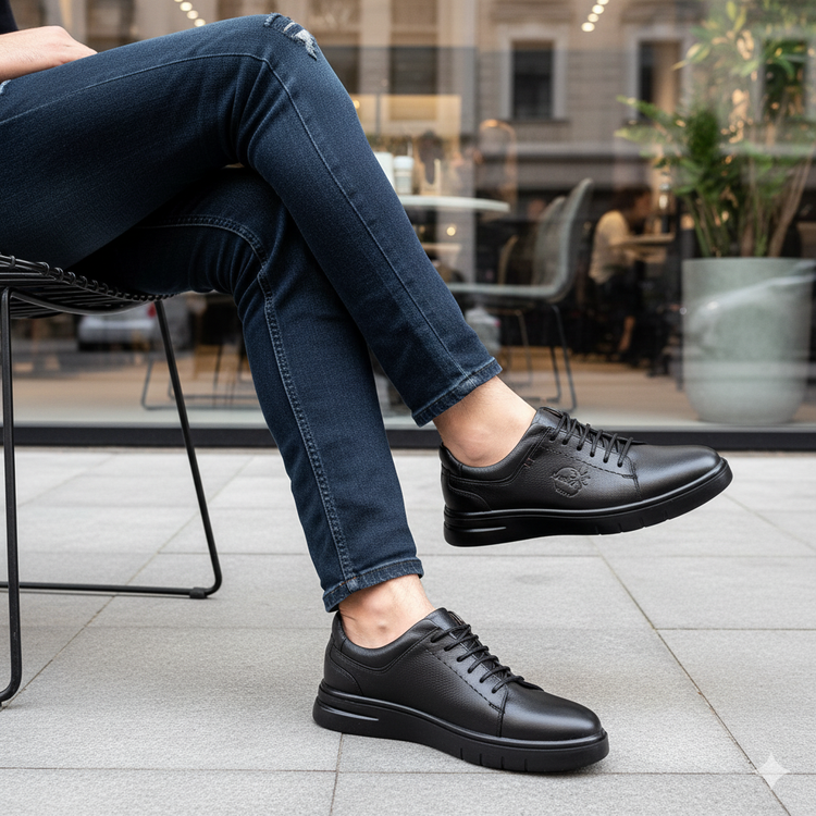 ظاهری شیک و بروز با استایل اسپرت و نیمه رسمی . قابل ست با انواع تیپ های اسپرت و نیمه رسمی . رنگ کفش مشکی می باشد.