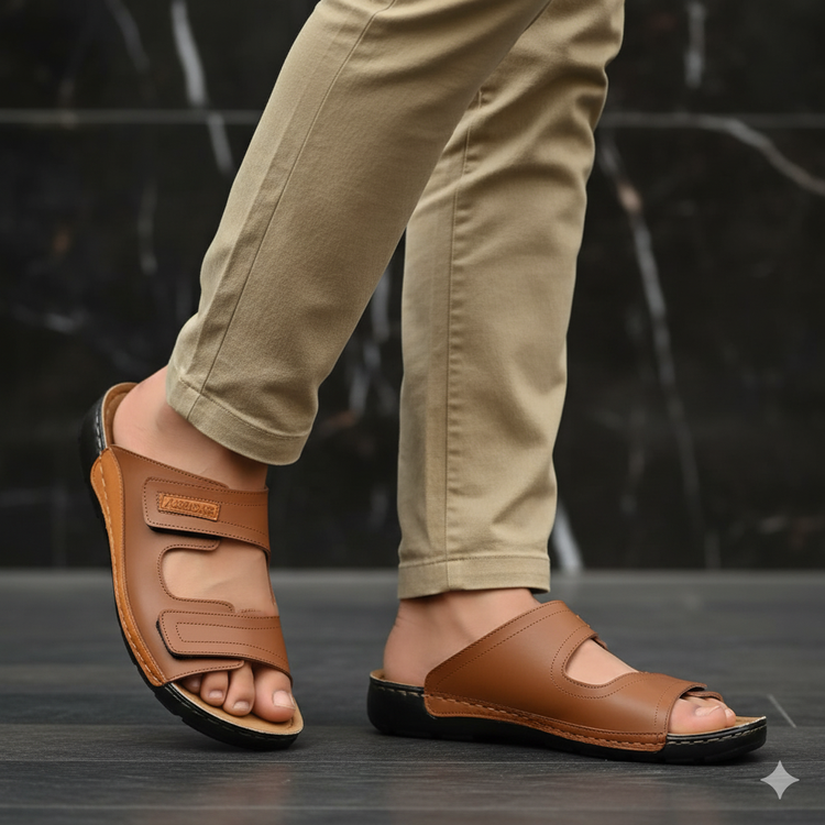 صندل فوق راحت و طبی و نرم قابل استفاده روزمره بیرن و روی فرش با جنس رویه چرم صنعتی باکیفیت و جنس کف اشبالت طبیعی طبی و زیره پی یو نرم و ضد ترک که به صورت کف دوخت و دور دوخت به رویه متصل شده است این صندل چسبی و قابل تنظیم می باشد قالب استاندارد است سایز خودتان را انتخاب فرمایید