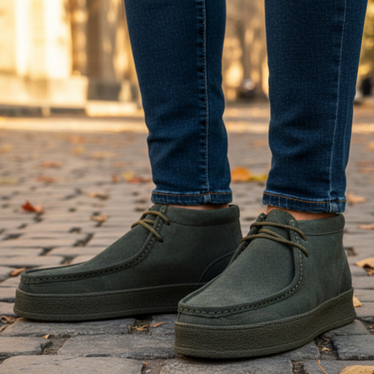 نیمبوت چرم مردانه تبریز کد NB066GN رنگ سبز از چرم طبیعی گاوی جیر اشبالت باکیفیت ساخته شده و دارای زیره crep اورجینال ضد لغزش و بادوام است. این نیمبوت چرمی اصل تبریز با طراحی کژوال مناسب ارگونومی پا ساخته شده وطبی است، انتخابی عالی برای استفاده روزمره و کژوال محسوب میشود.