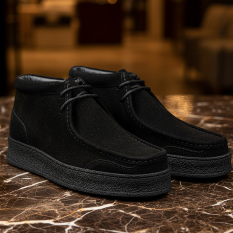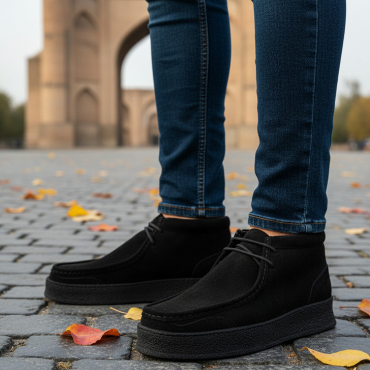 نیم بوت چرم مردانه کد NB008BK رنگ مشکی هورس