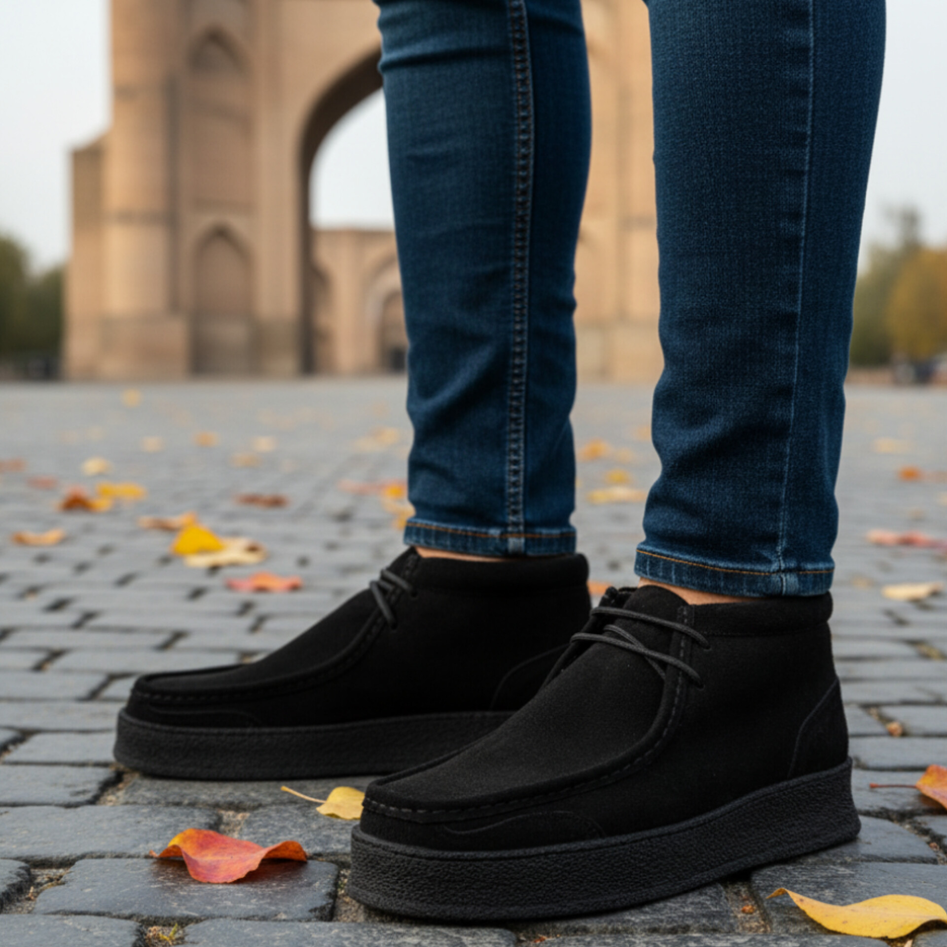 نیمبوت چرم مردانه تبریز کد NB008BK رنگ مشکی از چرم طبیعی گاوی هورس اشبالت باکیفیت ساخته شده و دارای زیره crep اورجینال ضد لغزش و مقاوم است. این نیمبوت چرمی اصل تبریز با طراحی بروز در عین سادگی پاخوری جذابی دارد، انتخابی عالی برای استفاده کژوال و طبی روزمره محسوب میشود.