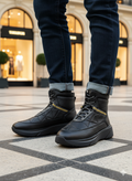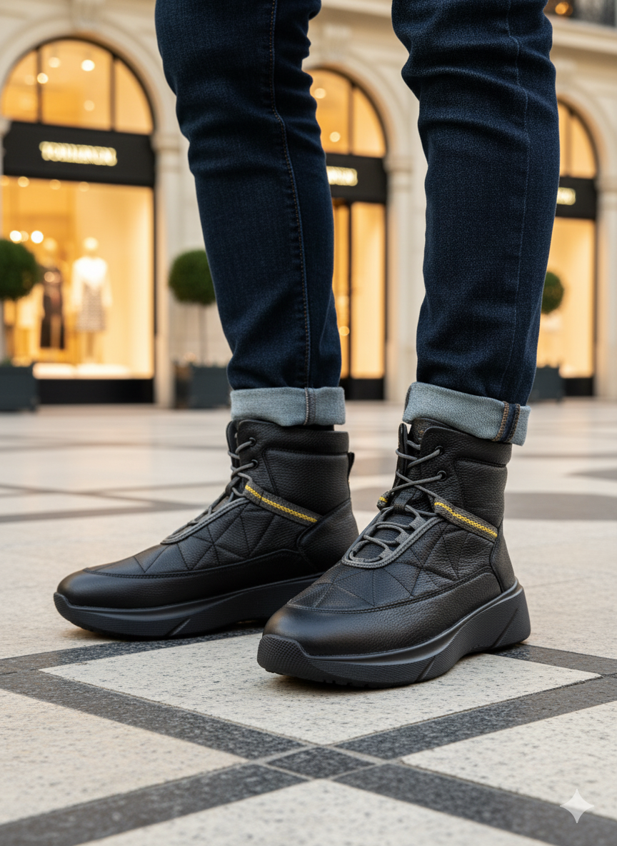 نیم بوت چرم مردانه کد NB007BK رنگ مشکی مدرن