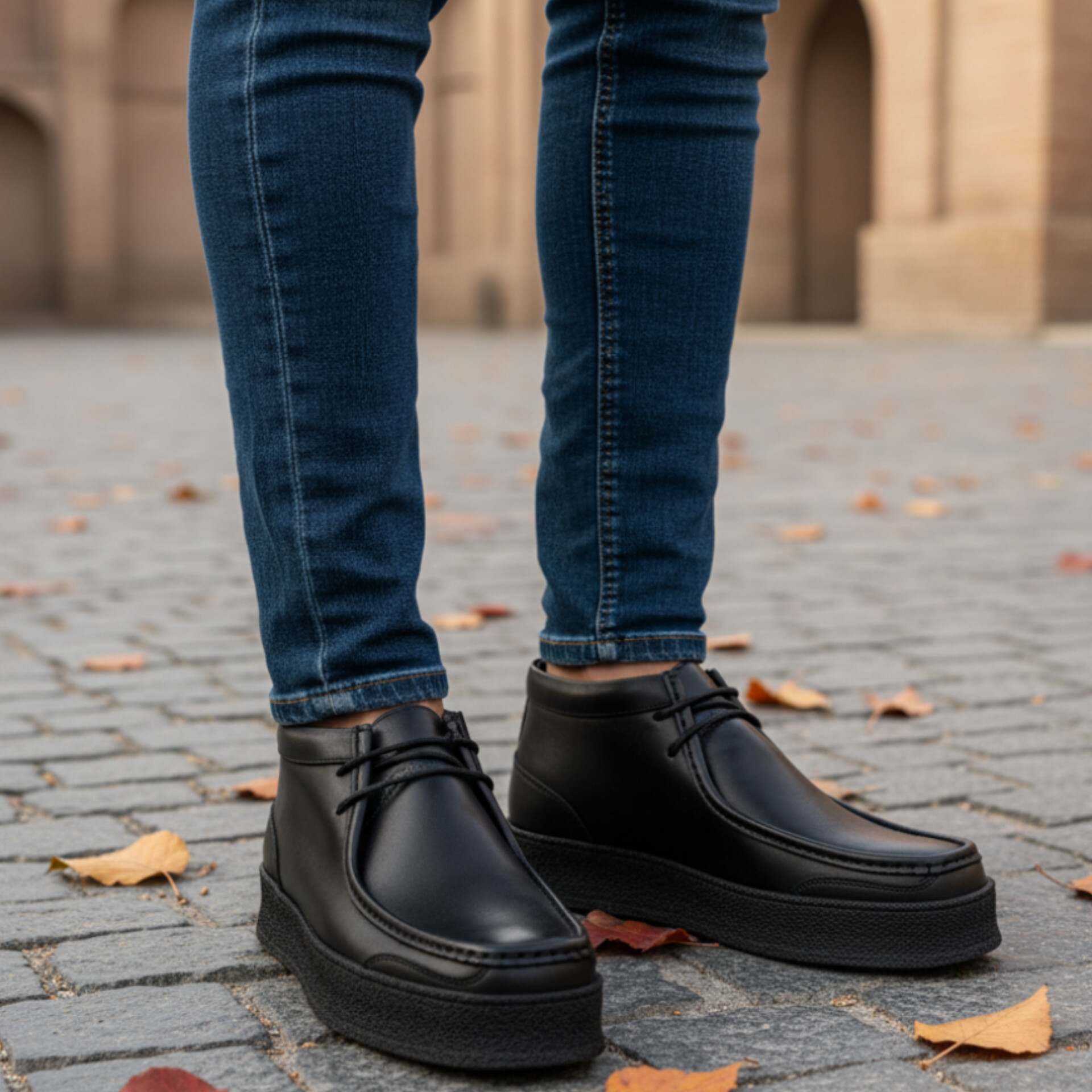 نیم بوت چرم مردانه کد NB006BK رنگ مشکی مدرن