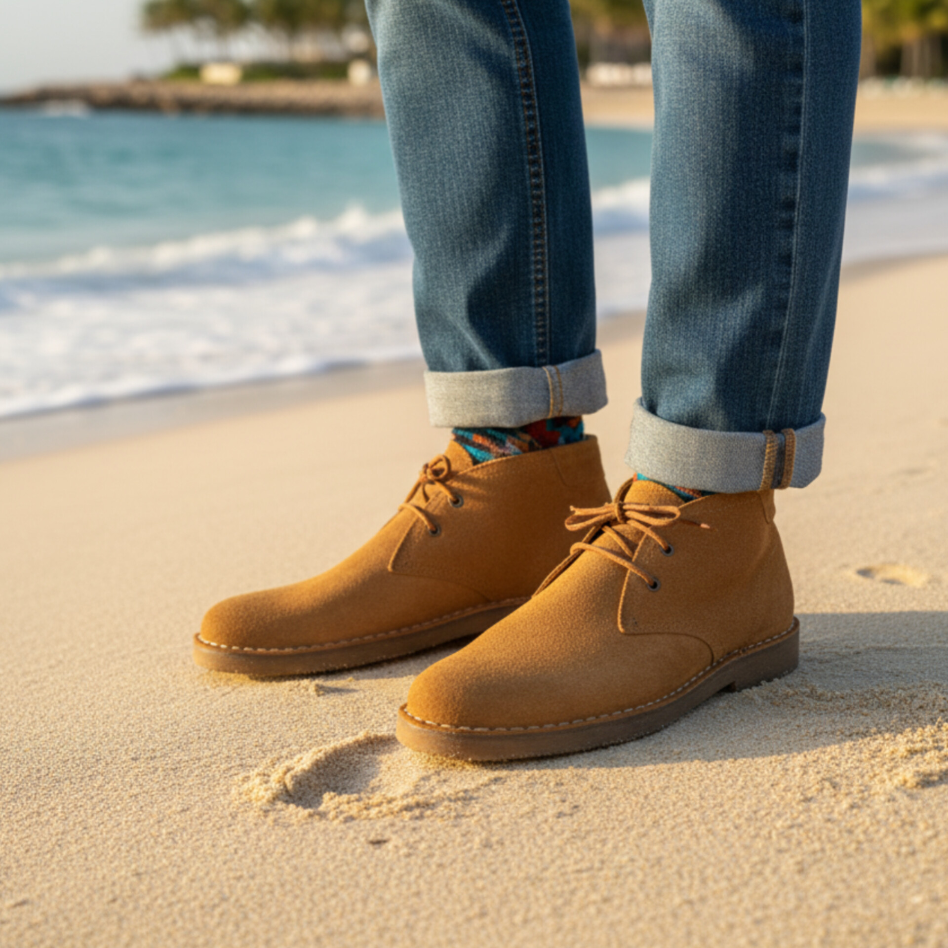 نیم بوت چرم مردانه کد NB037TN رنگ عسلی مدرن